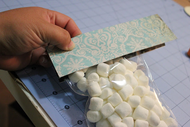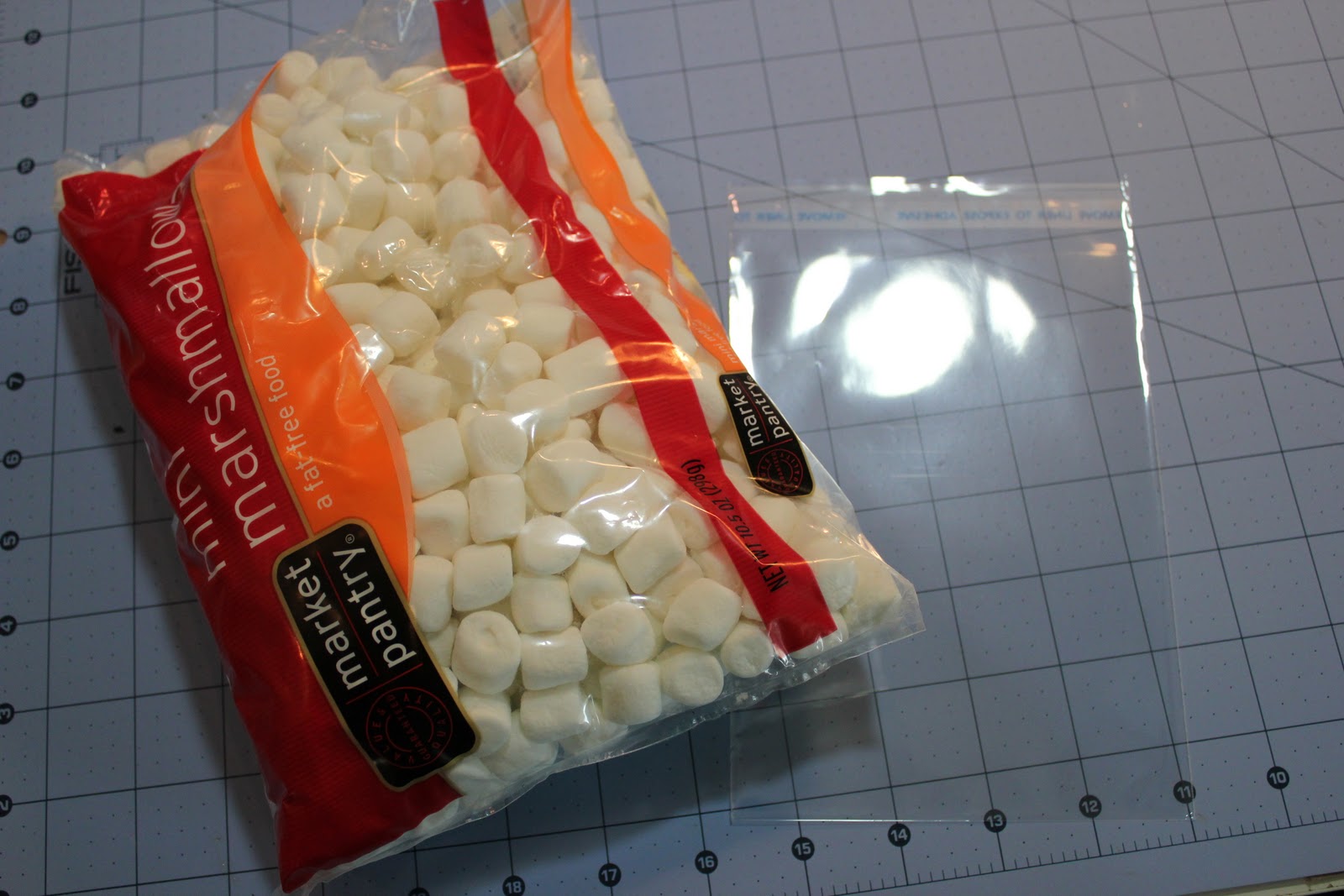 Fill the self-sealing bag with marshmallows and seal well. A zip-top style bag can be used instead of a lip ‘n seal bag.