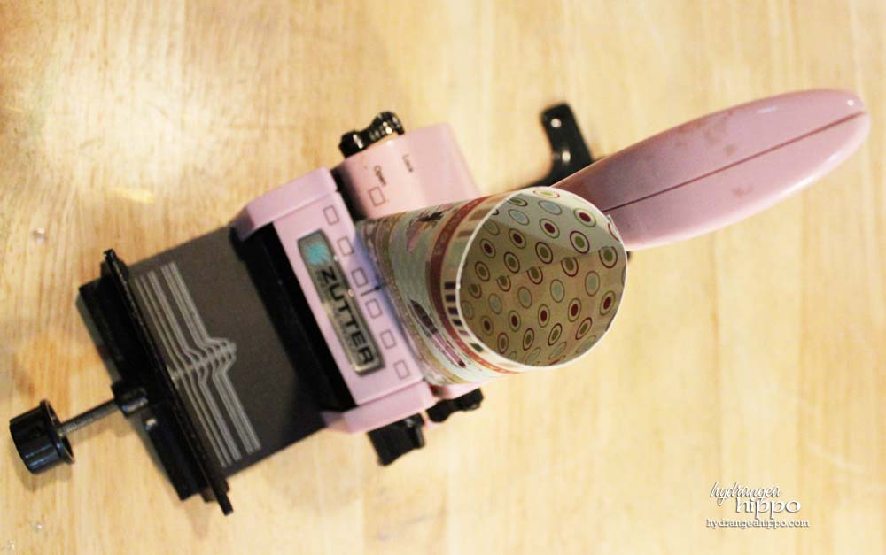 Apply Tape to one 6″ edge of each piece of paper and roll into a tube. Each 12×12 paper will yield 4 tubes. I like to use Crafty Power Tape by 3L Scrapbook Adhesives because it is easy to apply and holds better than anything else!