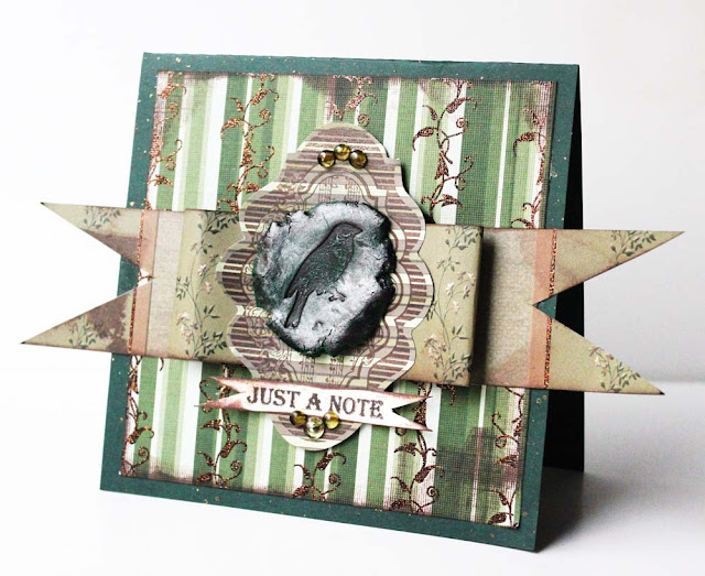 The card features a stamped “seal” which we will create using ColorBox ink, stamps by JustRite Stampers, Smooch Accent Ink, and Makin's Clay: