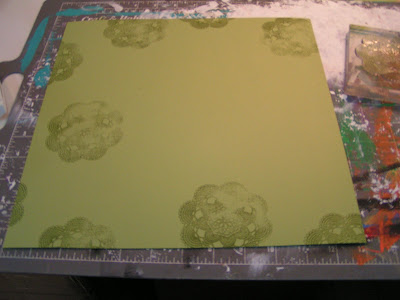 Stamp the doily on and off the edges of each piece of Bazzill Hillary Cardstock.