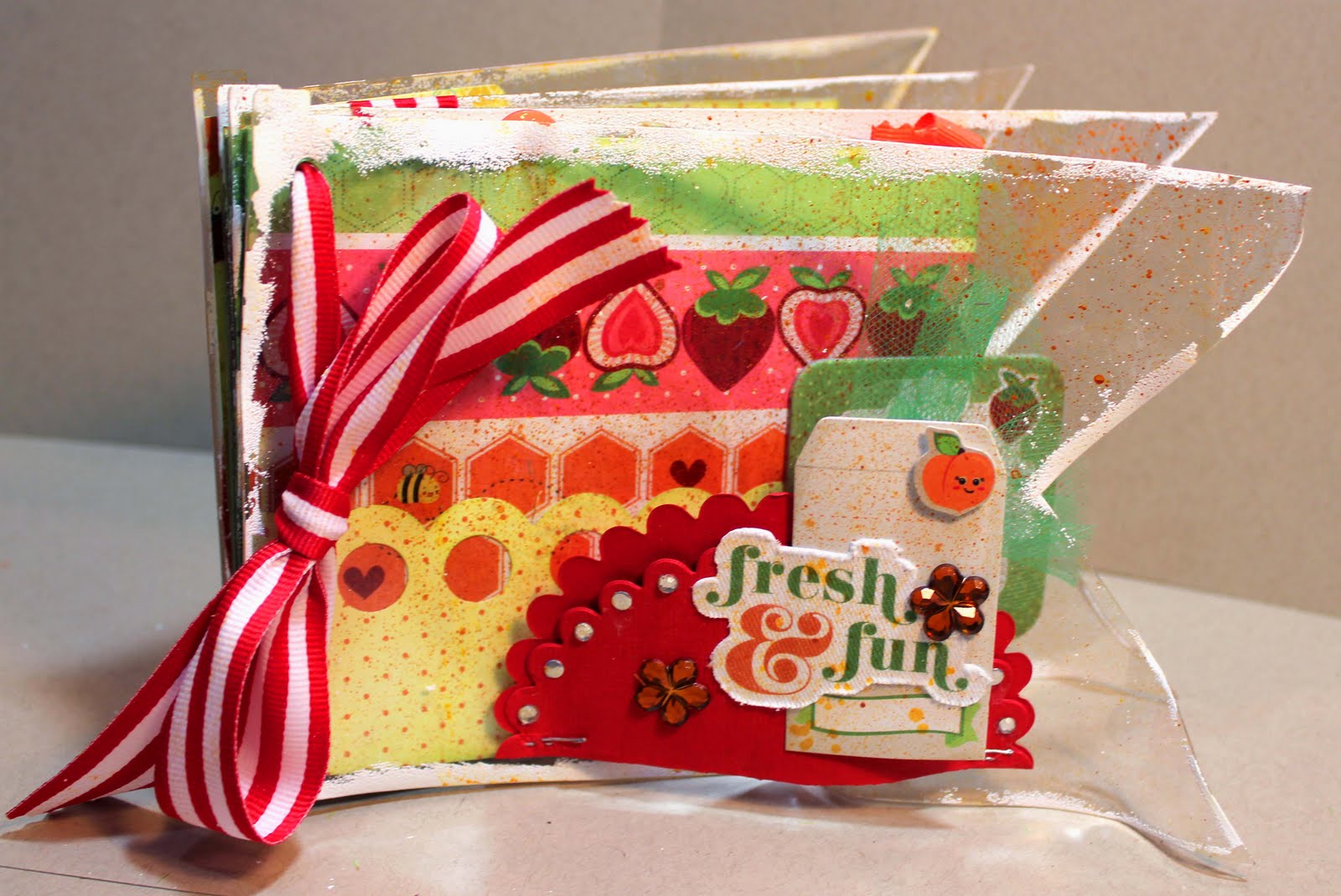 I made a sweet mini album from the Large Pennant Banners pack by Clear Scraps featuring Imaginisce's new Berrylicious Collection and i-rock tool.