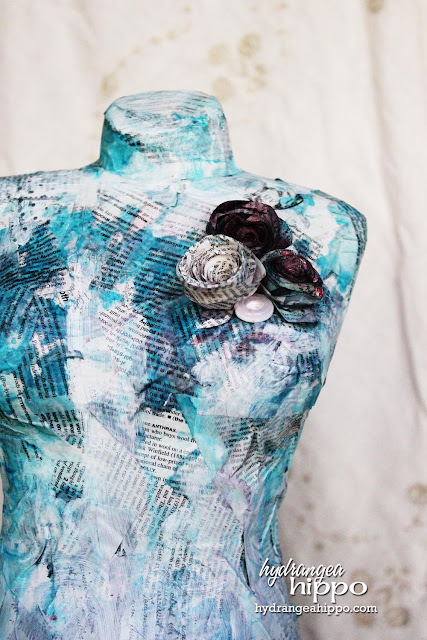 A few months ago, Elena of Charity Wings and I were brainstorming about projects I could teach at the event. Inspired partially by my altered dress at CHA and also by all the dictionary paper I have been working on, we came up with the idea of an altered dress form. Darice sponsored us with these amazing 3D dress forms and I added the spindles and wood base. A little Collage Pauge Decoupage by ilovetocreate.com, some Smooch Spritz by Clearsnap, and a little acrylic paint and BAM!