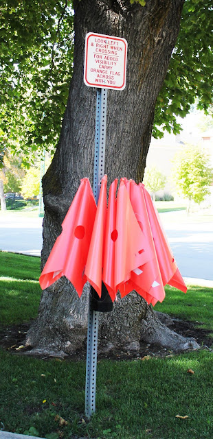 We had a blast being silly with these flags for crossing the street–it was funny but morbid at the same time.
