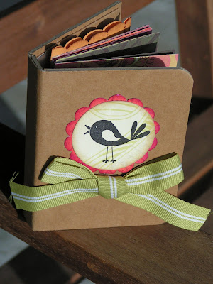 Earlier this month I taught the class at The Scrappin' Table in Placentia, CA. We also made the BONUS project, a fun little mini book featuring Zutter's Cover-Alls. Each student customized their Cover-All and book in the class. We had themes from all over the calendar — mom, Halloween, girl…a little bit of everything. Here's the sample–mine pales in comparison to what these Bind It All experts were creating in the class!