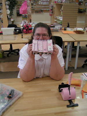 A Desktop Perpetual Calendar – here's Robyn holding the one she made in one of my past Bind It All Boot Camp classes ;)