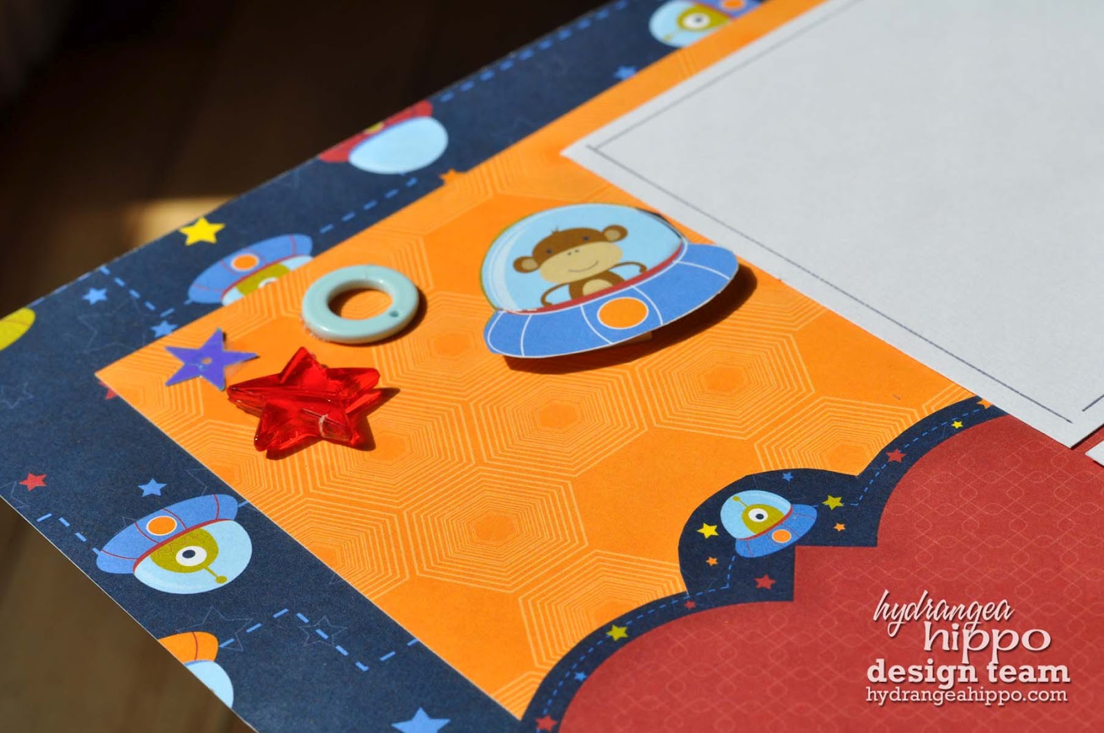Hi everyone! Nancy here today to share with you a layout I made for all the fun photos we plan on taking at the birthday party I made the decorations for using the Blast Off Paper Crafting Kit from the Hydrangea Hippo store. (you can see the party decorations here.)