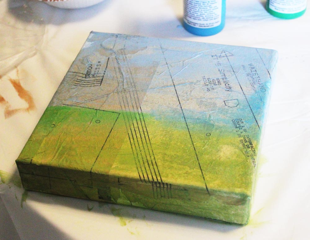 Next we did Christy Tomlinson's class to make a canvas. This was similar to the one we did at Spark but different, a house, and we used some other materials as well.