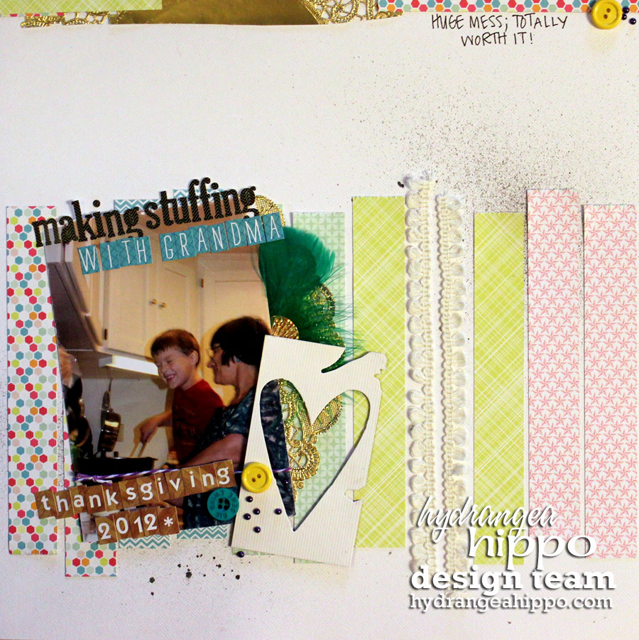 Quickly, I put together a layout using the kit. There is so much texture in the included goodies that this layout has a lot of variety but isn't too cluttered either. Cutting the paper pad into strips made a very fun background. There was a bit of space left over. That space was perfect for strips of the ivory loop ribbon. Not only was the space perfect, it added a great texture to what would have otherwise been a very flat space.