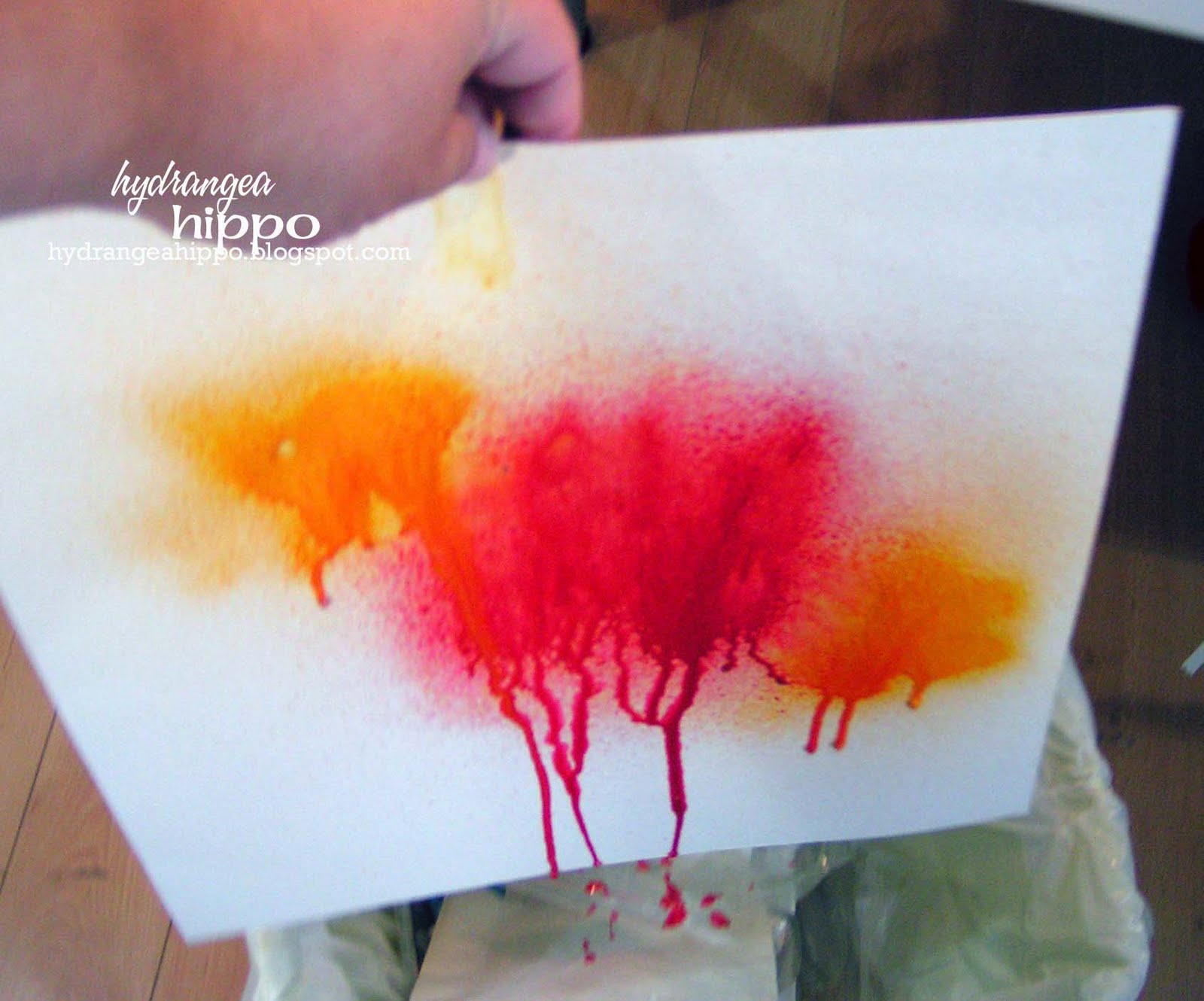 Again, tilt the paper so the water and Smooch drip to the bottom. Use a heat gun to dry the drips so they are nice and intense.