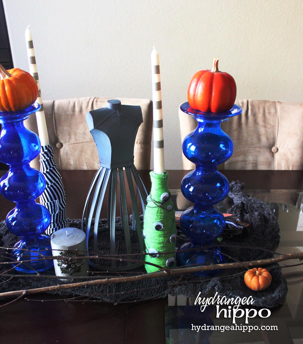- Top the candle holders with other decor items, mini pumpkins, fake pumpkins or whatever other spooky stuff you have around your house.