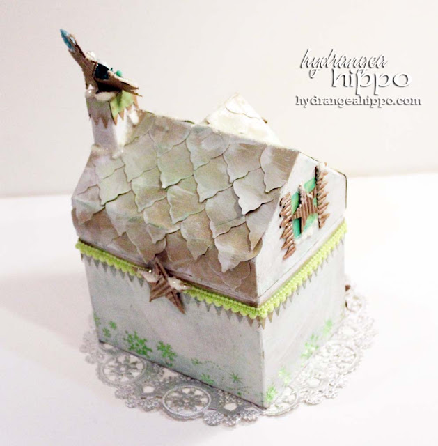 Love the way you altered the box, kinda reminds me of those little glitter houses my grandparents had when I was a kid. Thanks for the tut.
