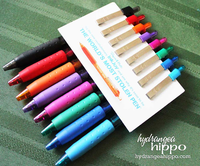 I recently received a Pen Theft Prevention Kit form PaperMate, containing their new InkJoy Pens!! I love the little safe that came with a lovely assortment of colored pens!!