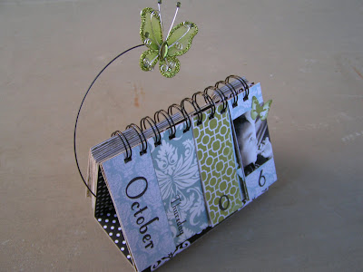 I have a class coming up there later this month–“Nifty Gifties” where we will make 6 different little gifts including this cool perpetual desktop calendar: