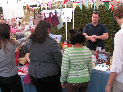 This little Indie Arts and Crafts Fair was very indie! LOL It was fun to go see all the handmade and recycled goods. I spent a pretty penny and it was nice to support some local artists. The first place we stopped was Mahar Drygoods. I just had to let the guy know I found his blog and then that Indide Fair from his blog and here I was. I bought some fun stamps and and some super cute vintage feeling buttons that will be making an appearance in one my classes soon!