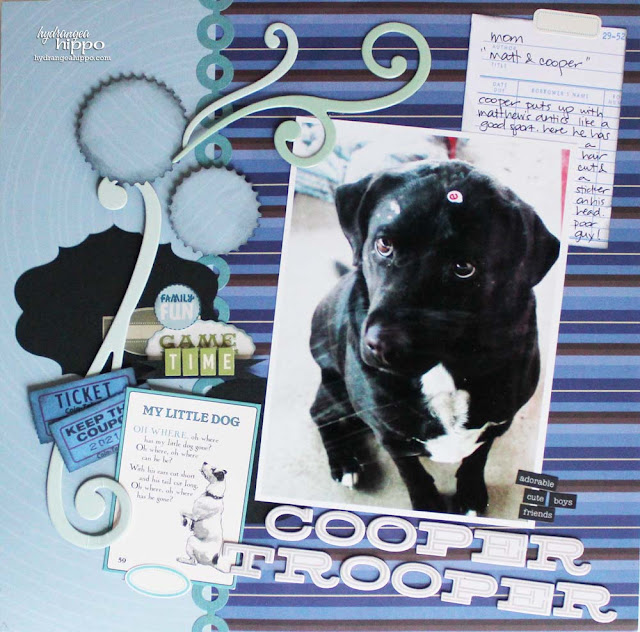 Last month I went on a weekend retreat with a group of friends, WhoGivesAScrap?! I took my Silhouette and I am so glad that I actually used it! There are some shapes I have had for years that I just never seem to use so I also set a goal to use some of them. The little trees on this layout are one case in point–I think I got them 3 years ago!! LOL