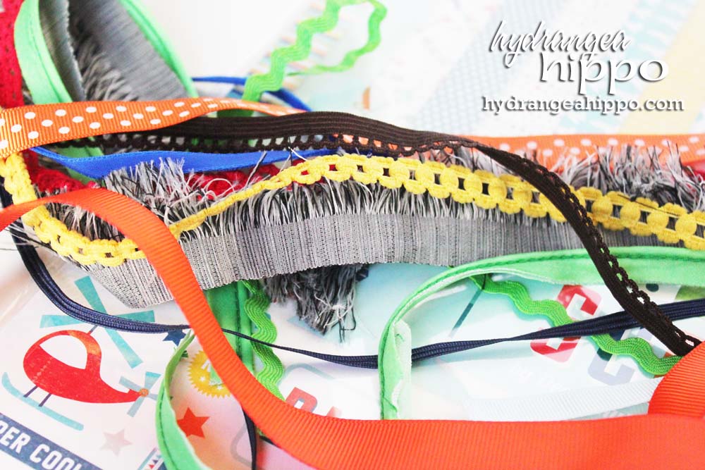 - At least 10 yards of ribbons, trims, ricrac, and more