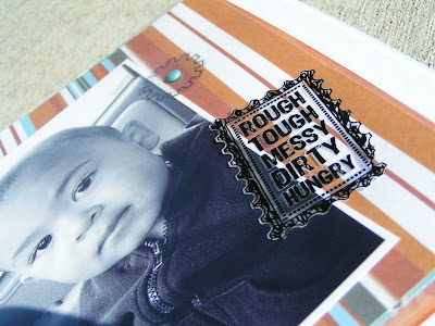 I used papers and rubons from Kaiser Craft, buttons and the album and alpha stickers are all American Crafts, QK vinyl in black, Lil Davis Ribbon, and the brads and gears are from Magic Scraps I think.