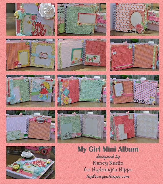 Hi everyone! Nancy here today to share with you the insides of the My Girl mini I made using the kit from the Hydrangea Hippo etsy store. I love the Zutter Cover-All that was included in this kit. So much fun to decorate.