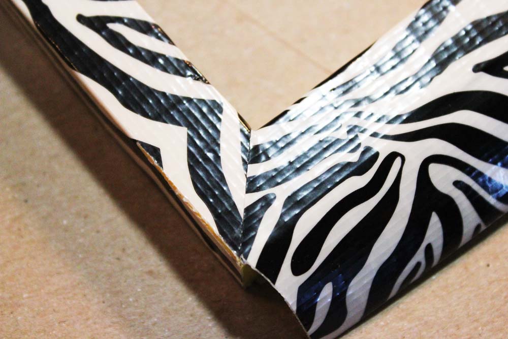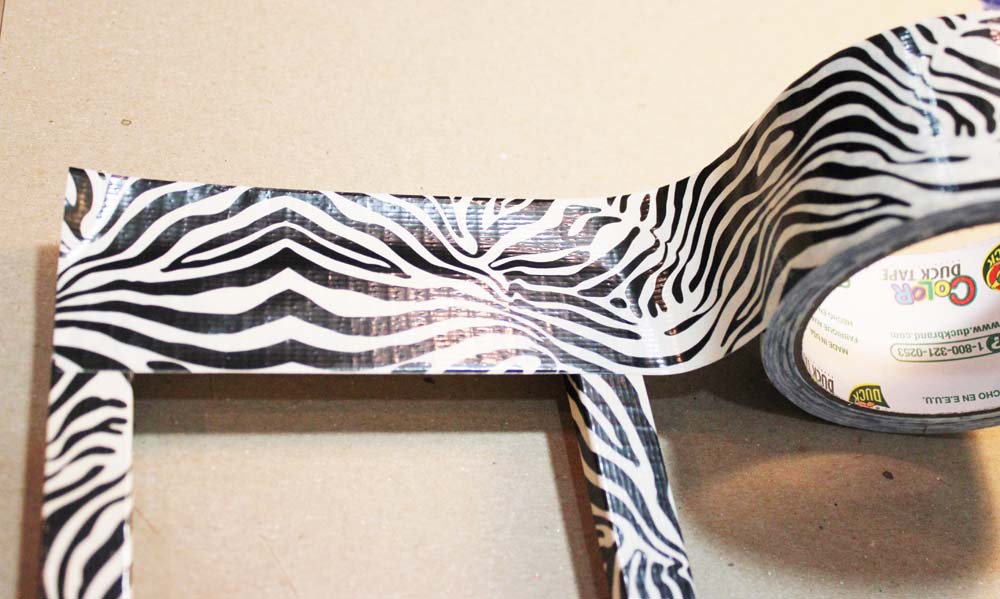 I started by applying a strip of The Duck Brand® Patterned Duct Tape Rolls, Zig-Zag Zebra to the front of the frame with tape extending over the edges of the frame.