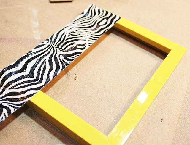 I have had this frame for a few months now, getting a deal on it while on clearance. I think it was a 4 pack of frames for $2! I used a couple of them but honestly, this bright yellow only matches one of the rooms in my house and the frames were coming apart at the seams. My daughter's room is pink,black, and white and as soon as I saw The Duck Brand® Patterned Duct Tape Rolls, Zig-Zag Zebra, I knew what to do!