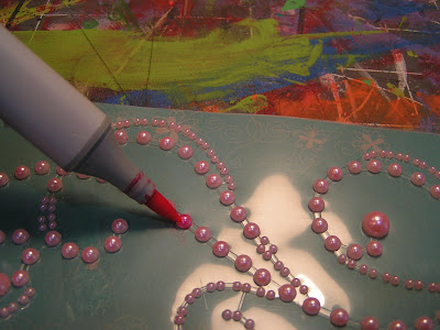 I colored one pearl with R32 (pink) and then started on a darker pink, RV14, on the next pearl: