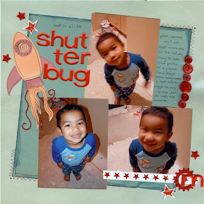 On this next page I used more of the Prima cardstock and paper pieced a rocket from it. I used MM alphas I got on clearance from M's for the title, some buttons from my stash, and a piece of Heidi Swapp tape I have been trying to use up for 4+ years. Gotta use the stash to make room for new goodies, right?