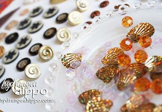 Hi everyone, Nancy here today to share with you a few projects I made with one of my favorite kits from Hydrangea Hippo, the Island Summer Kit. I love the summery colors of the papers, the gorgeous trims, and most especially the fun beads and baubles.