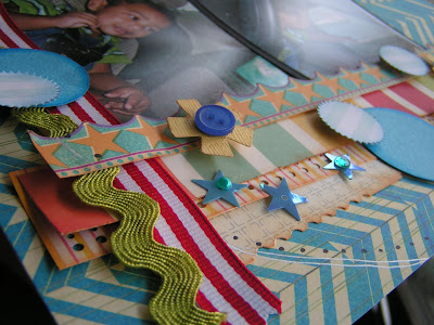 Distressed edges are really fun but there's more than way to get that “tattered look”, like using border punches. I used a postage stamp style border punch on the Grid Paper mat on this page to “distress” it: