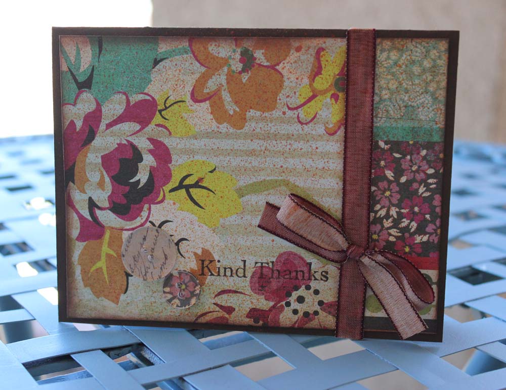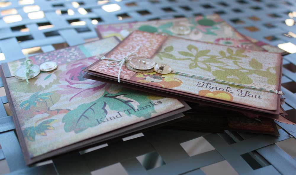I love to have a stash of thank you cards on hand. The best way to make them is to just sit down with a stack of card bases and a bag of scraps and go to town. I love to do this at crops.