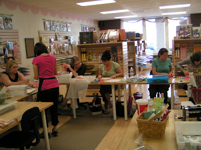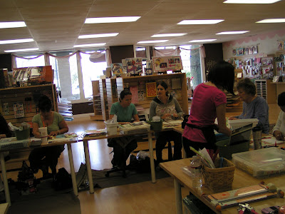 I taught Twenty Pages In One Day 2009 this past Saturday at The Scrappin' Table in Placentia, CA. I was prepping prepping prepping and prepping this past week like a mad woman getting it all done. There is SOOOOOO much coordinating that goes into putting on this class so that it runs smoothly and we finish on time. Not to mention remembering all the tools, paint, ink, and other goodies that I have to bring to the class. We had a great time and the class went very smoothly–almost everyone finished their pages.