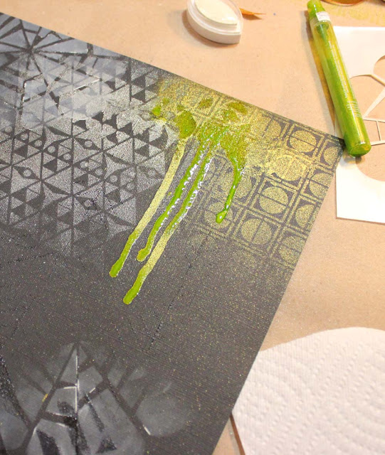 Your background is so spooky/awesome! Love the paint drips and the clear resist effect!