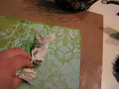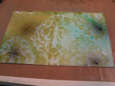 You can step up this technique by using Diamond Glaze or Crystal Lacquer. Donna Salazar uses this technique on Prima Paintables by first painting areas of the pattern with several coats of Diamond Glaze. Then she mists them or paints them, wiping the excess from the glazed parts for a resist effect. I am featuring this effect in my 7Gypsies book I posted about a couple of days ag0 (class has been postponed).
