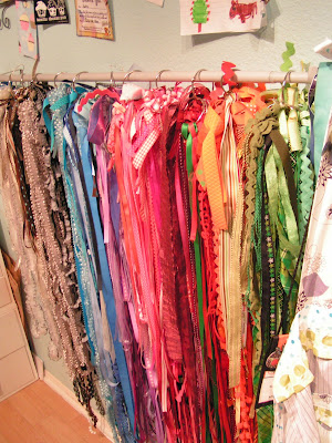 Your scrappy room is beautiful. I cannot tell you how much joy those rings of ribbon bring me just looking at them. If you saw my room right now you would cry. It is a train wreck. Oh well, Sunday hopefully it will be better. Can we trade rooms?