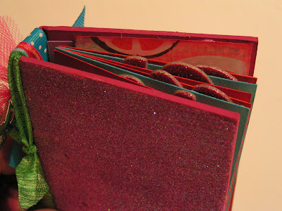 A little about the cover — I painted it all pink (inside and out) and then I painted the outside cover with white glue and then sprinkled glitter all over. It's like a sugarcoated book!! I thought it was kind of fun and different from just a paper covering. Also I worried that a paper covering would get messed up in Katie's back pack where as with this, I can just add a little more paint and glitter for a “touch up” job.