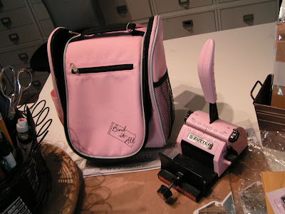 Notice the black glitter and paint on my Pink Bind-It-All V 2.0?? I broke that puppy out of the box right away, put it in the bag and it went to class with me yesterday. We were using the Kaiser Craft wood crown books in the class and guess what? The Pink Bind-It-All V 2.0 went through the WOOD! I'll be submitting the finished crown book to the Zutter Zisters Gallery later this month so keep an eye out for that!! Now off to play…